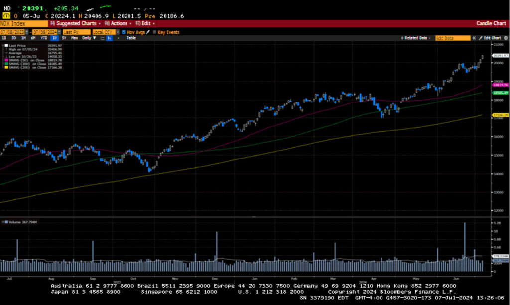 The holiday-shortened week saw the S&P 500 hit its 34th record high this year. The NASDAQ 100 also eclipsed the 20k mark for the first time. Traders welcomed weaker-than-expected economic data that