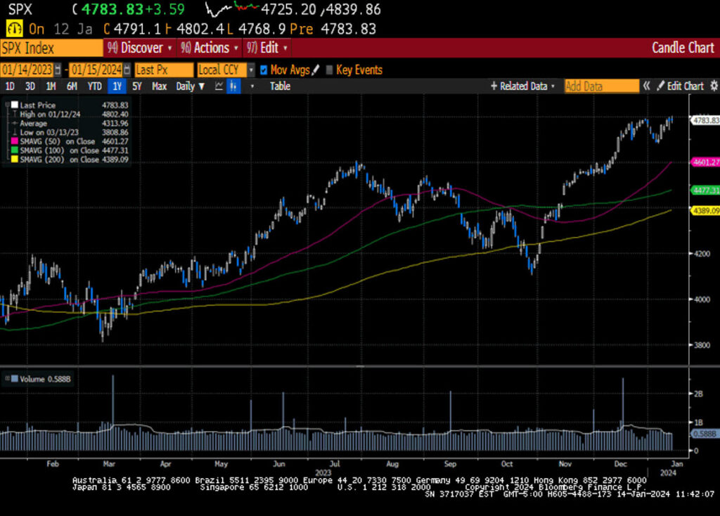US Markets gained ground in the second week of 2024, attributed to mega-cap issues in the Information Technology and Communication Services sectors. The Equal-weight S&P 500 was up 0.2%, while the Mega-Cap