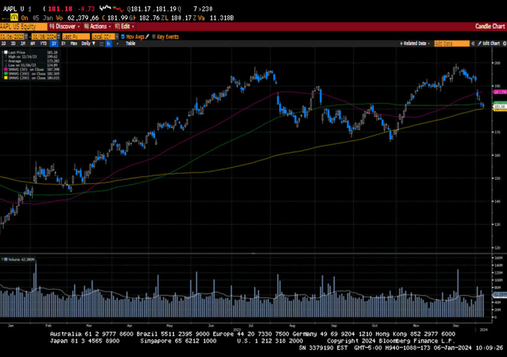 After nine weeks of gains, the market fell in the first week of trading in 2024. Interestingly, the losses incurred this week largely came from areas of the market that outperformed last
