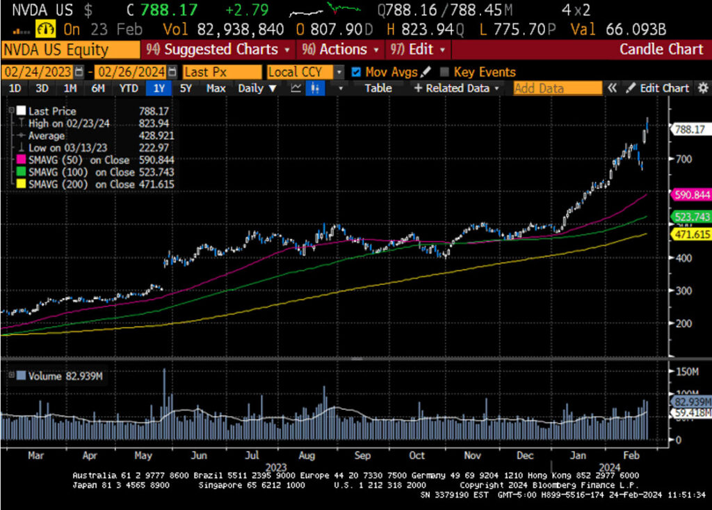 The S&P 500 and the Dow Industrial Average forged new all-time highs despite investors taking profits early in the holiday-shortened week. Semiconductor stalwart NVidia’s fourth-quarter earnings results induced a massive rally in