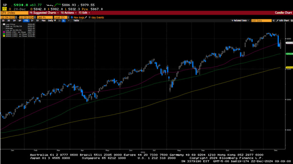 Equity and fixed-income markets sold off for the second consecutive week as the Federal Reserve delivered an expected twenty-five basis-point rate cut but pivoted to a much more hawkish stance for 2025,