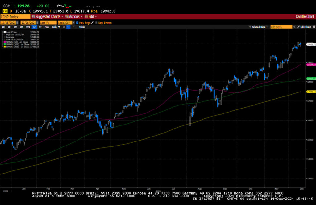 The Nasdaq eclipsed the 20,000 level for the first time this week as investors reengaged in buying the mega-cap technology names. Amazon, Google, Tesla, and Meta hit new highs for the year
