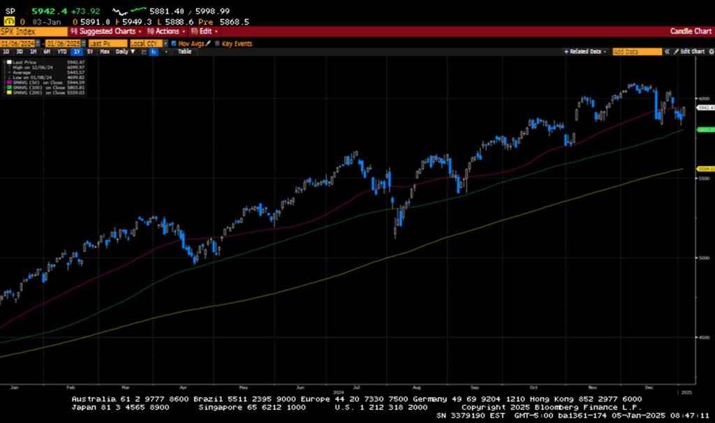 US equity markets fell in the first full week of 2025 as investors recalibrated their Federal Reserve monetary policy expectations. Stronger labor data, a robust ISM Services print, and a weaker Consumer